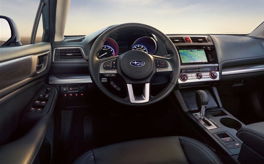 The Legacy: On the inside the Legacy is a driver's car with controls well placed and intuitive to use. It is not overly complex and doesn't require light reading to figure out the air conditioning. It's unpretentious and straightforward. In terms of features the Legacy offers a nice selection. These include automatic headlights, foldable rear seating, a four speaker audio system, Bluetooth, and USB features stock. Options include a leather steering wheel, better trim, heated seats, and a 4.3 inch display among others.