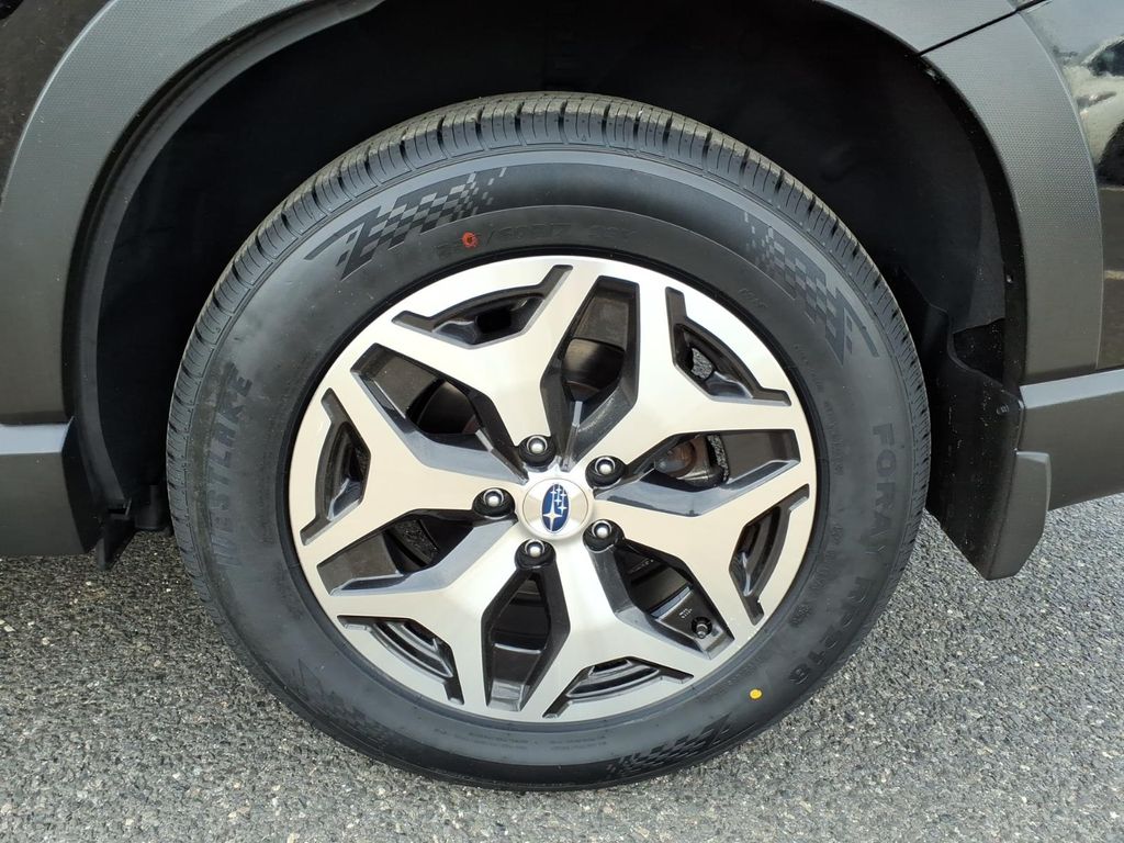 This Forester Premium also adds practical everyday comfort with automatic climate control, rear seat vents, SUBARU STARLINK 6.5-inch Multimedia Plus audio, Bluetooth and USB connectivity, a leather-wrapped steering wheel, 60/40 split-folding rear seatback, retractable cargo cover, heated power mirrors, roof rails, fog lights, and LED steering responsive headlights with high beam assist. The file also shows added accessories including an auto-dimming mirror with Compass and HomeLink, splash guards, and rear bumper cover.