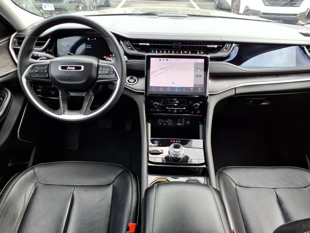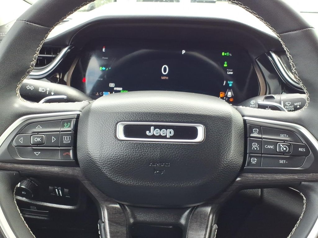 plug-in hybrid (4xe), Quadra-Trac II 4WD, Selec-Terrain, 10.1-inch navigation touchscreen, Apple CarPlay/Android Auto, adaptive cruise control with stop & go, lane keep/active lane management, blind spot monitoring, heated steering wheel, heated front + heated rear seats, power liftgate, and a dual-pane panoramic sunroof.