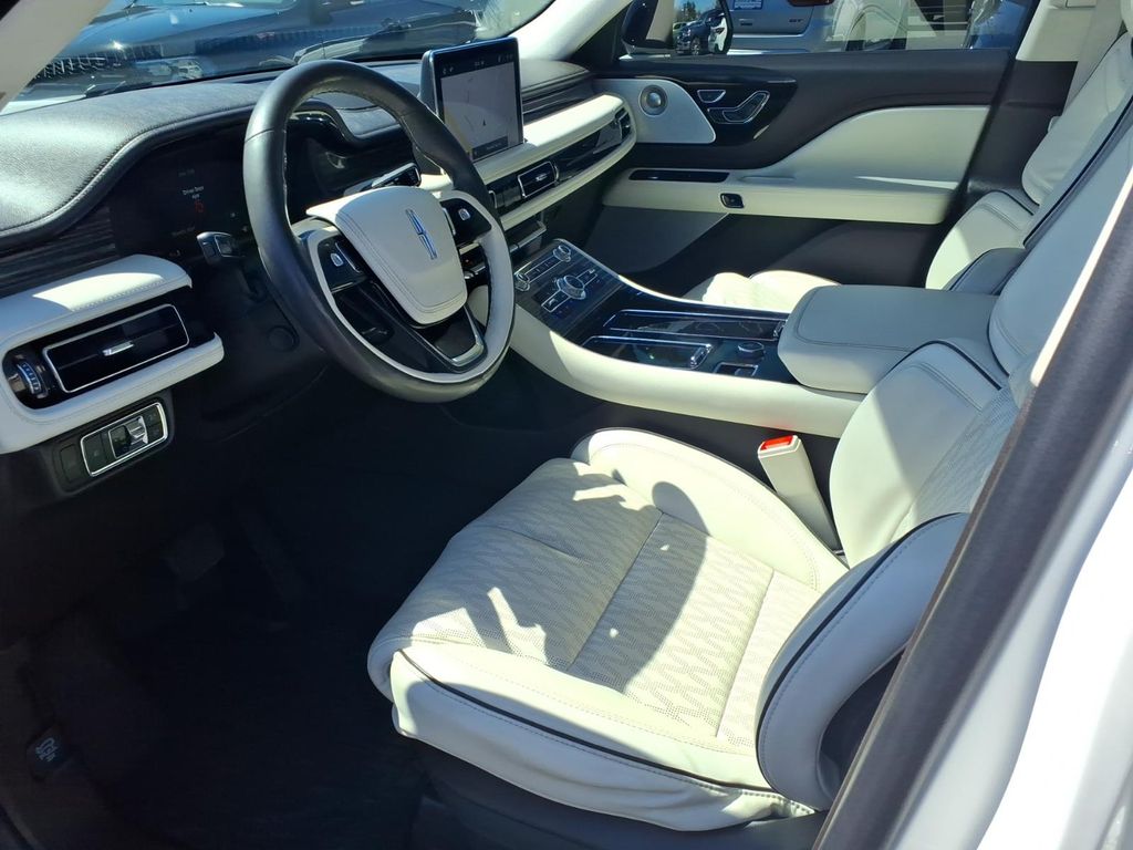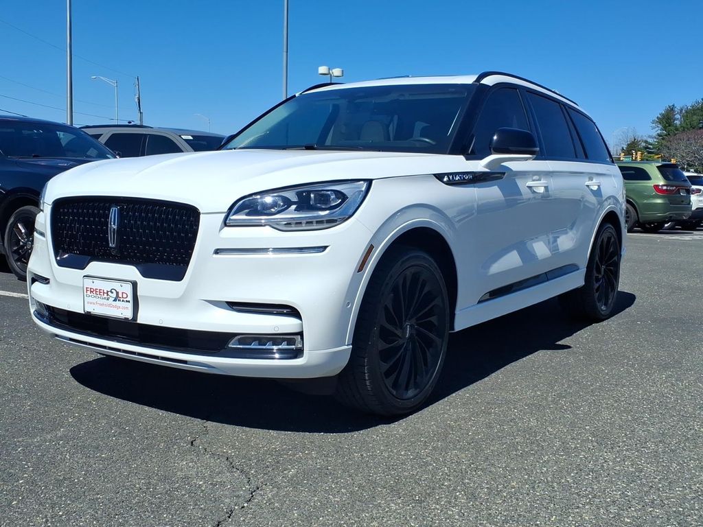 This used 2024 Lincoln Aviator AWD Black Label is a premium 3-row SUV built for comfort, advanced tech, and a refined driving experience. The window sticker shows Pristine White Metallic Tri-Coat (3C) with Alpine leather seat surfaces, powered by a twin-turbocharged 3.0L V6 paired with a 10-speed automatic transmission.