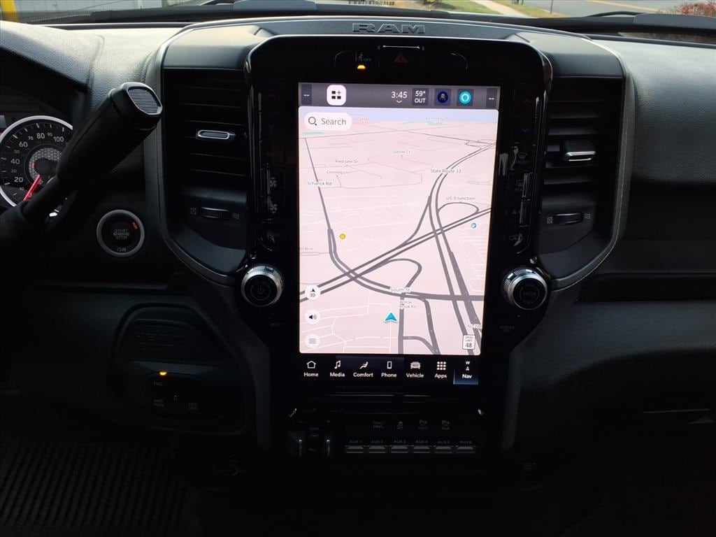 CARFAX One-Owner. Clean CARFAX. Active Cruise Control, Active Lane Management System, Adaptive Steering System, Air Conditioning ATC w/Dual Zone Control, Anti-Spin Differential Rear Axle, Apple CarPlay, Blind Spot & Cross Path Detection, Cloth 40/20/40 Bench Seat, Google Android Auto, GPS Navigation, Mopar Black Tubular Side Steps, MOPAR Spray In Bedliner, ParkSense Front/Rear Park Assist System, ParkView Rear Back-Up Camera, Power Adjust Mirrors, Power Heated Folding Telescope Mirrors, Quick Order Package 2UA Tradesman, Radio: Uconnect 5 Nav w/12.0" Display, Rain Sensitive Windshield Wipers, Rear Folding Seat, Rear Power Sliding Window, Red Tail Lamp Bezels, Remote USB Port - Charge Only, Safety Group, SiriusXM w/360L, Tradesman Level 1 Equipment Group, Wheels: 17" x 7.5" Black Steel Styled.