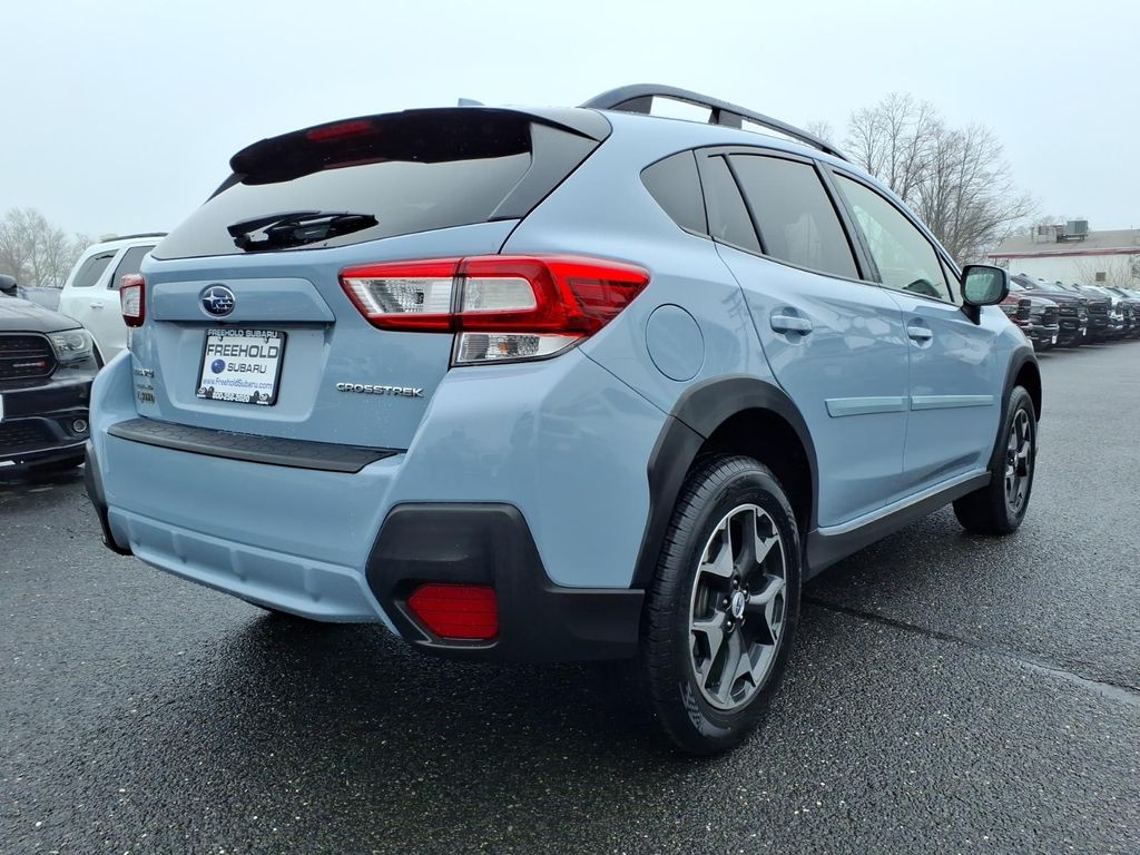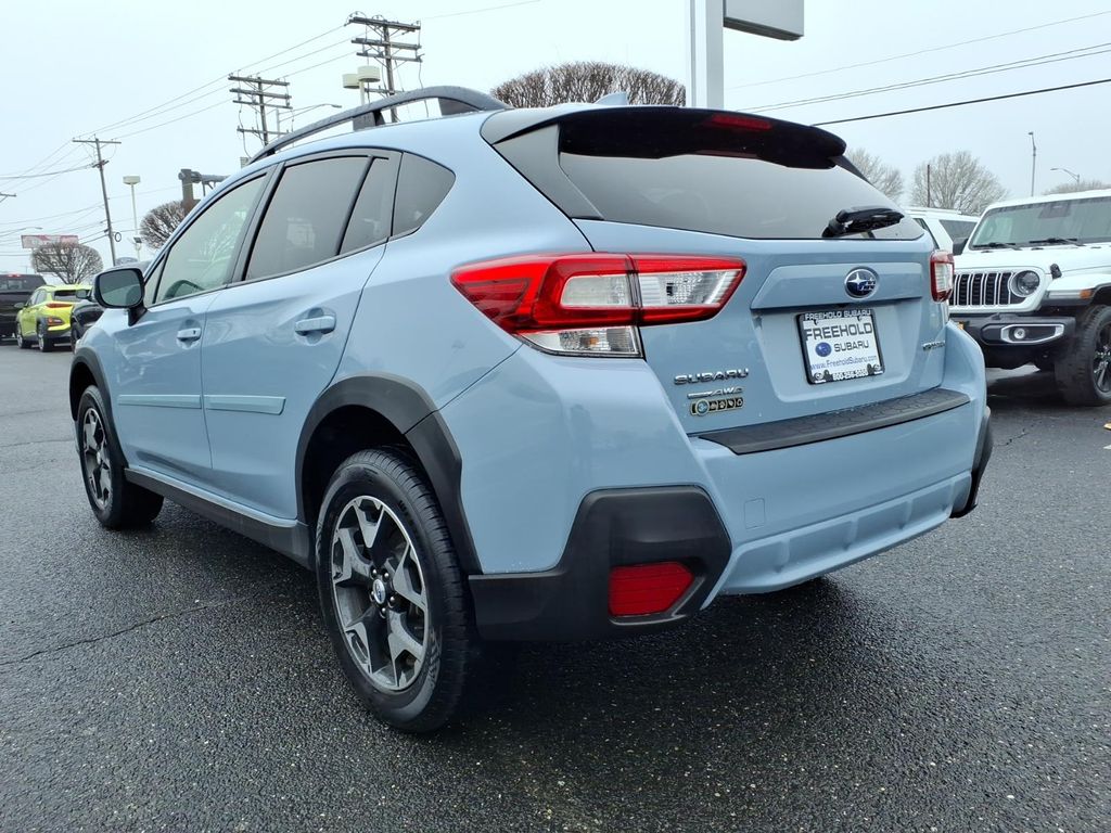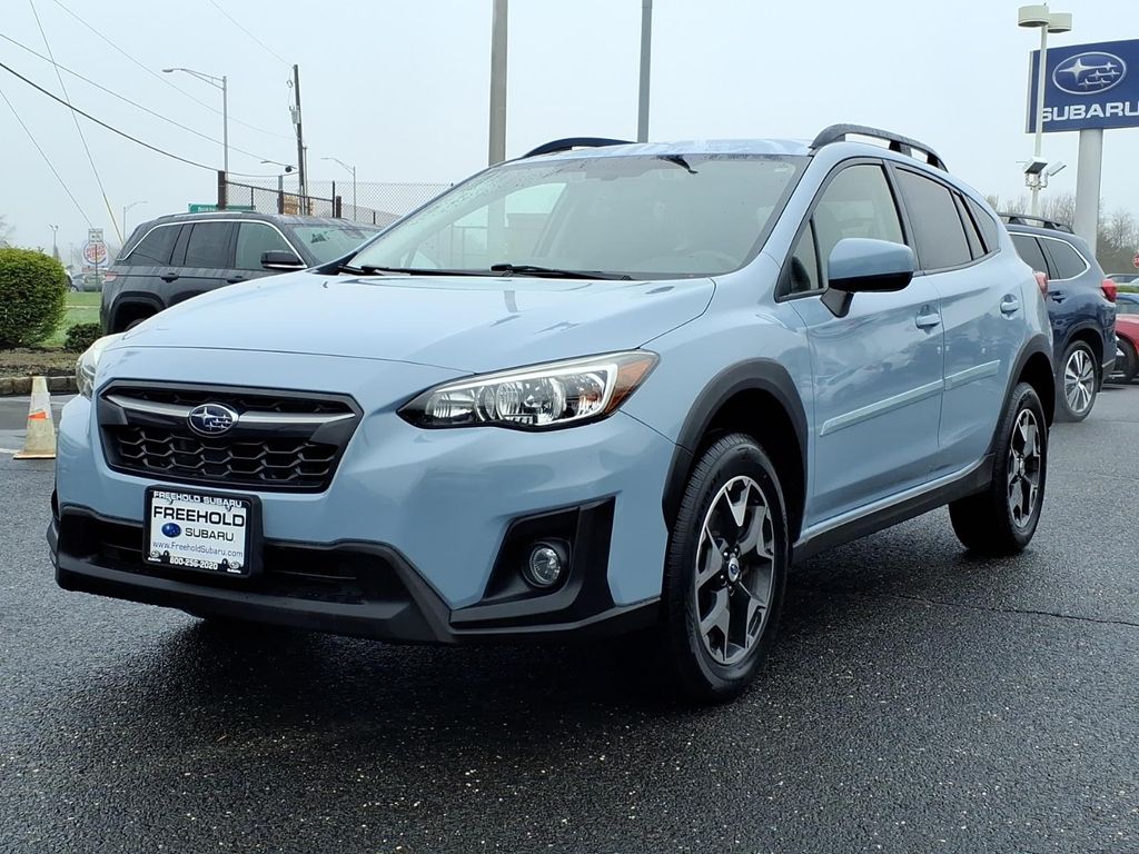 This used 2018 Subaru Crosstrek 2.0i Premium CVT AWD (VIN JF2GTADC7JH329265) is a practical, all-weather compact SUV finished in Cool Gray Khaki with a Black interior w/ orange stitching. The window sticker shows 27 city / 33 highway MPG and a Total Suggested Price of $25,905 (as originally configured).