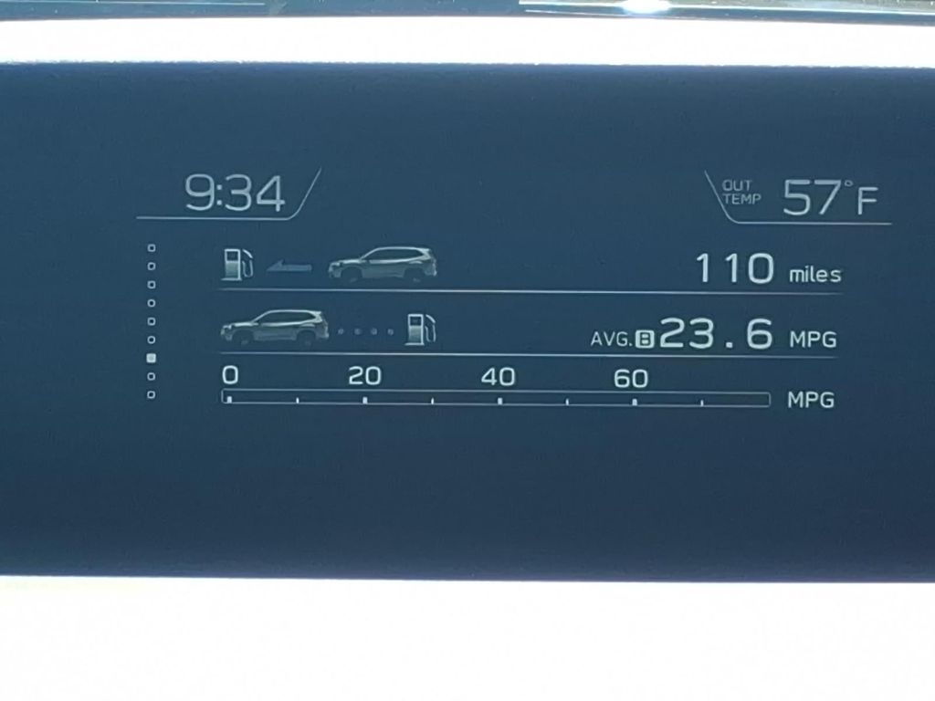 Under the hood, it’s powered by a 2.5L DOHC SUBARU BOXER engine with Auto Start Stop, paired with a Lineartronic CVT with 7-speed manual shift mode / SI-DRIVE, plus Dual-Mode X-MODE and 8.7" ground clearance. The fuel economy label shows 29 MPG combined (26 city / 33 highway).